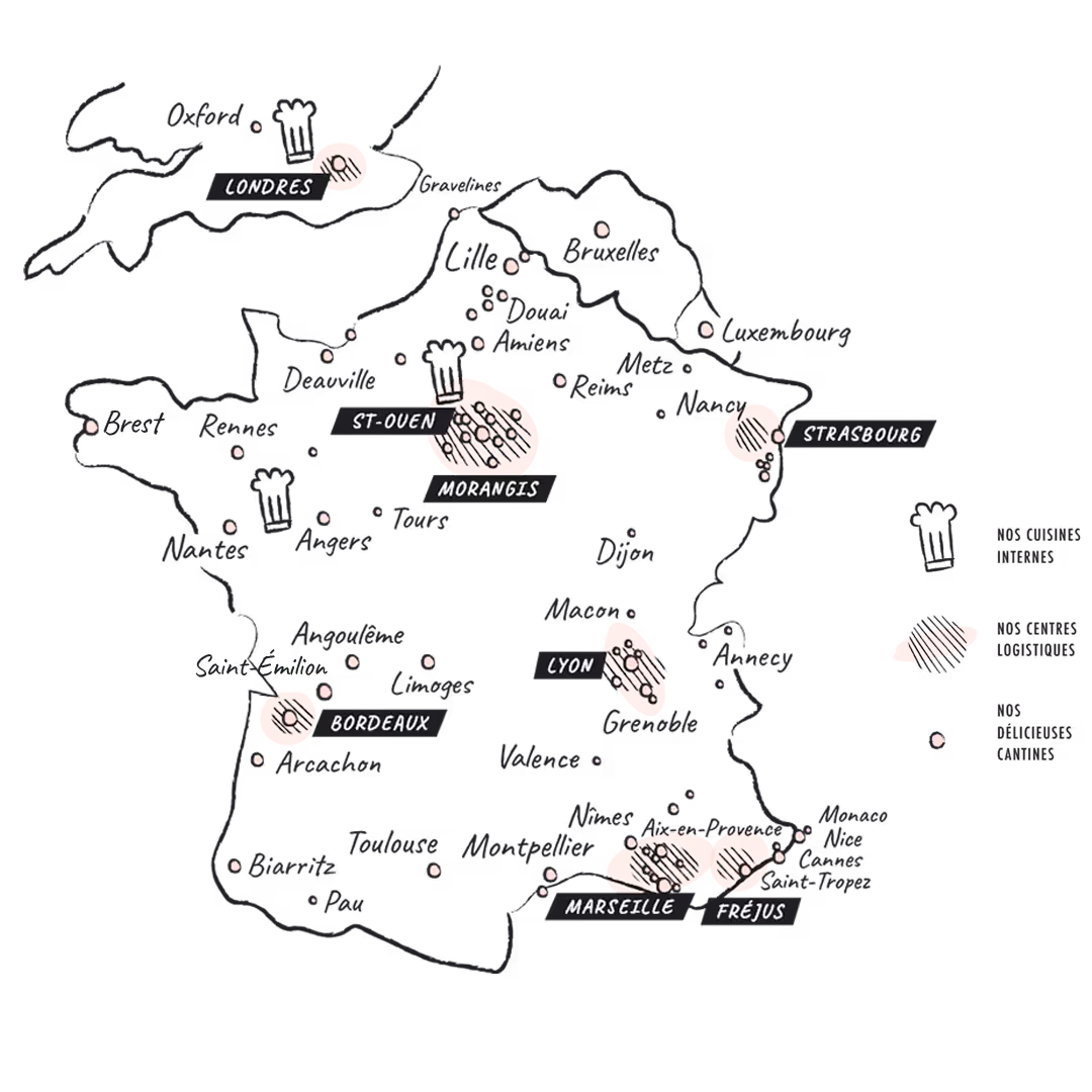 Nous choisissons les meilleurs ingrédients, selon une charte d’achat responsable, pour une alimentation variée et équilibrée : circuits courts privilégiés, pas d’ajout d’additif ni de conservateur, les fruits et légumes sont de saison, 100% de boeuf, porc et volaille est d’origine France (hors exceptions italiennes), 40% de nos fromages sont AOP ou IGP, 100% d'oeufs, beurre, lait et yaourts d'origine France et 40% de recettes végétariennes.